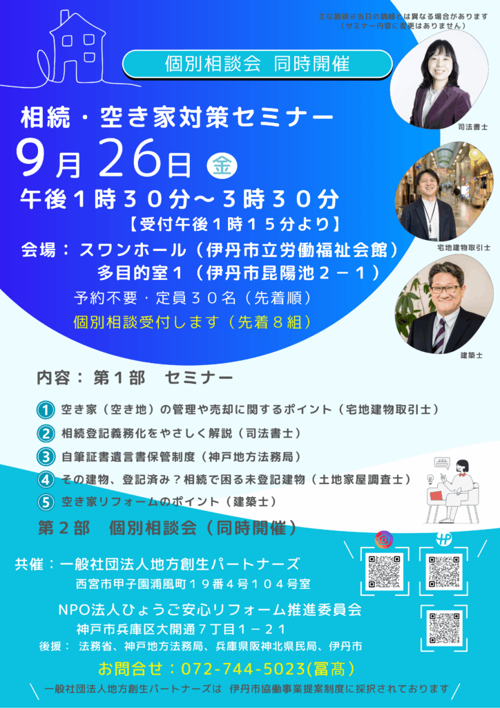 【9.26 伊丹市】相続・空き家セミナー&個別相談会