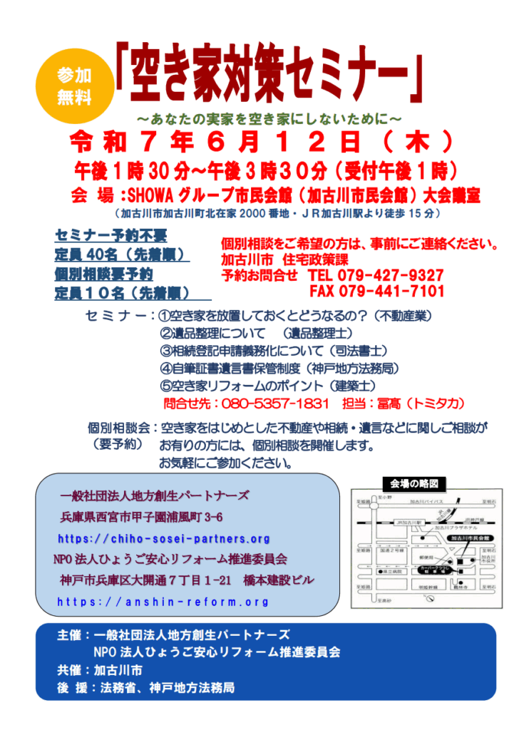 【6.12 加古川市】相続・空き家セミナー&個別相談会
